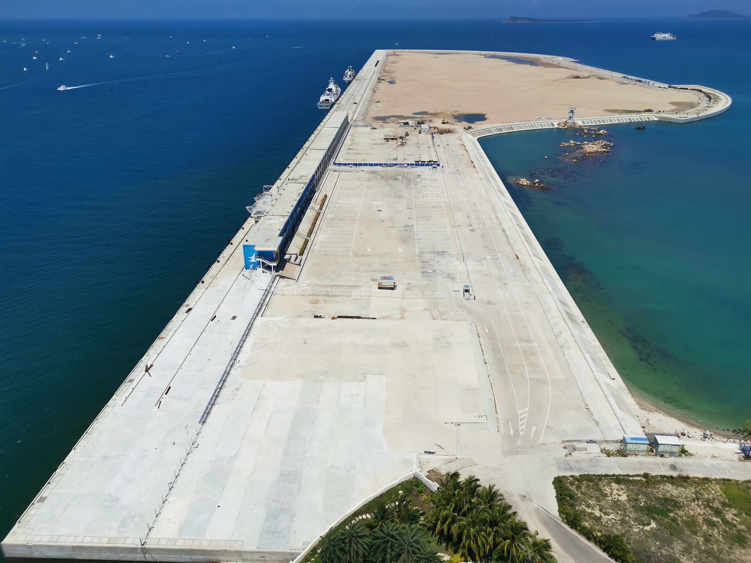 三亚凤凰岛国际邮轮港二期工程位于三亚湾内已建成的凤凰岛一期工程西南侧。项目拟建设2个大型邮轮泊位,分别为3#泊位和4#泊位,其中3#泊位拟建10万GT邮轮泊位,4#泊位建设15万GT邮轮泊位,两泊位合计码头岸线总长831m,码头结构按可停靠22.5万GT邮轮预留,陆域形成面积约47.6万平方米及相应的码头配套服务设施。码头设计通过能力为73万人次/年。包括航道、锚地、导助航设施、装卸工艺及水工建筑物等,概算总投资为239957.4万元,项目总工期2年。