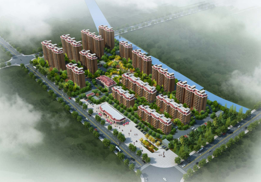 本项目为动拆迁安置房住宅小区,位于宝山区顾村镇,南至顾北路、东至潘泾路范围内。小区内设置10栋高层住宅、4栋多层住宅、公建配套用房、商业楼、门卫、垃圾房、变电站及一个地下车库。项目总用地面积为58517.3㎡,总建筑面积110203.69㎡,其中地上建筑面积82414.09㎡(计容建筑面积81924.22㎡),地下建筑面积为27789.6㎡。容积率1.4,建筑密度20.80%,集中绿地率10%,绿地率35%,住宅总户数802户。